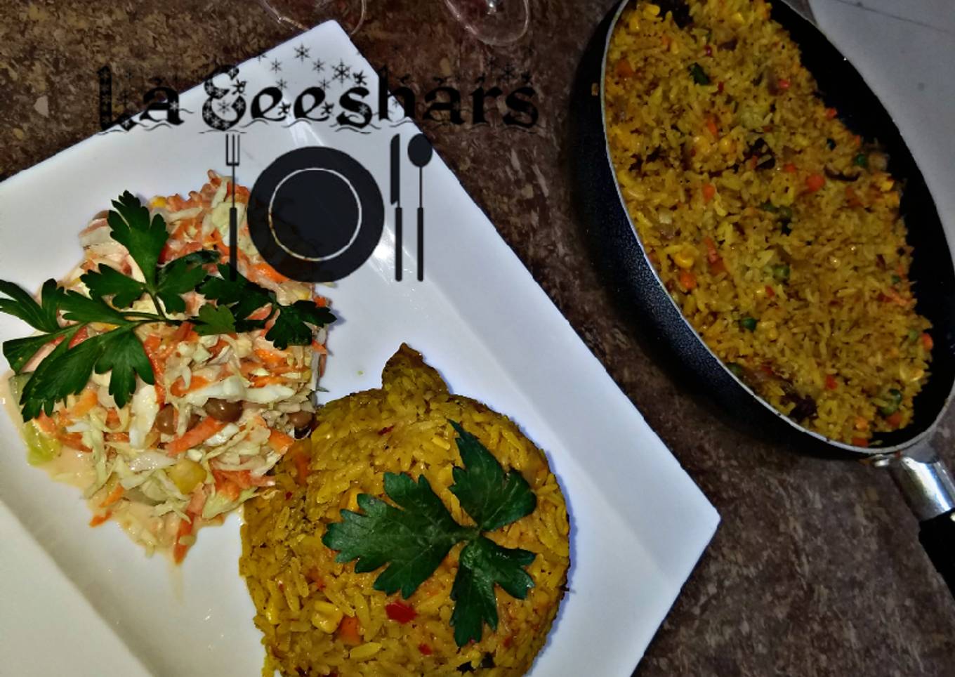 Chinese fried rice,coleslaw and chapman