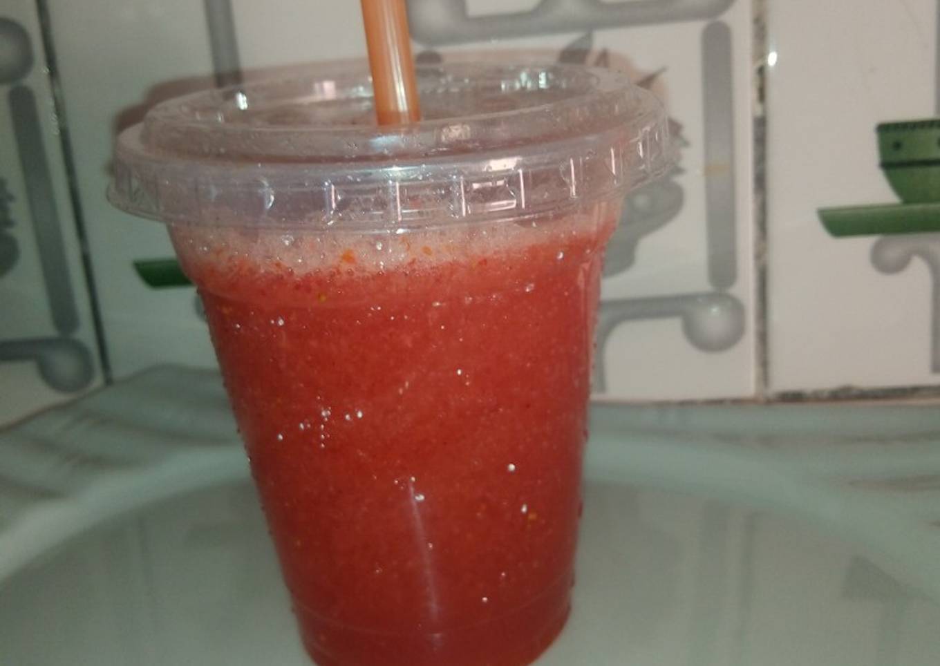 - Add the sprite in a blender then add the strawberry and blend it for like 5 minute
